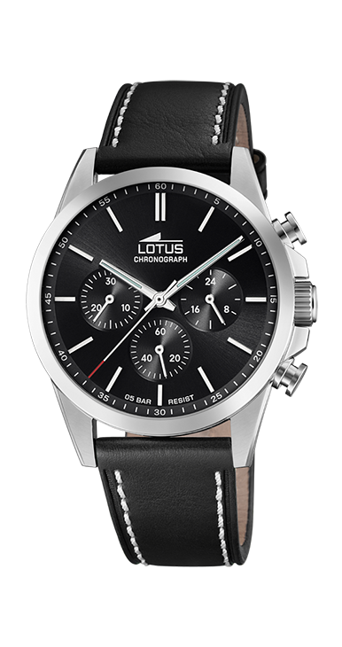Reloj Lotus Hombre Chrono con esfera negra y correa de piel | 18990/4